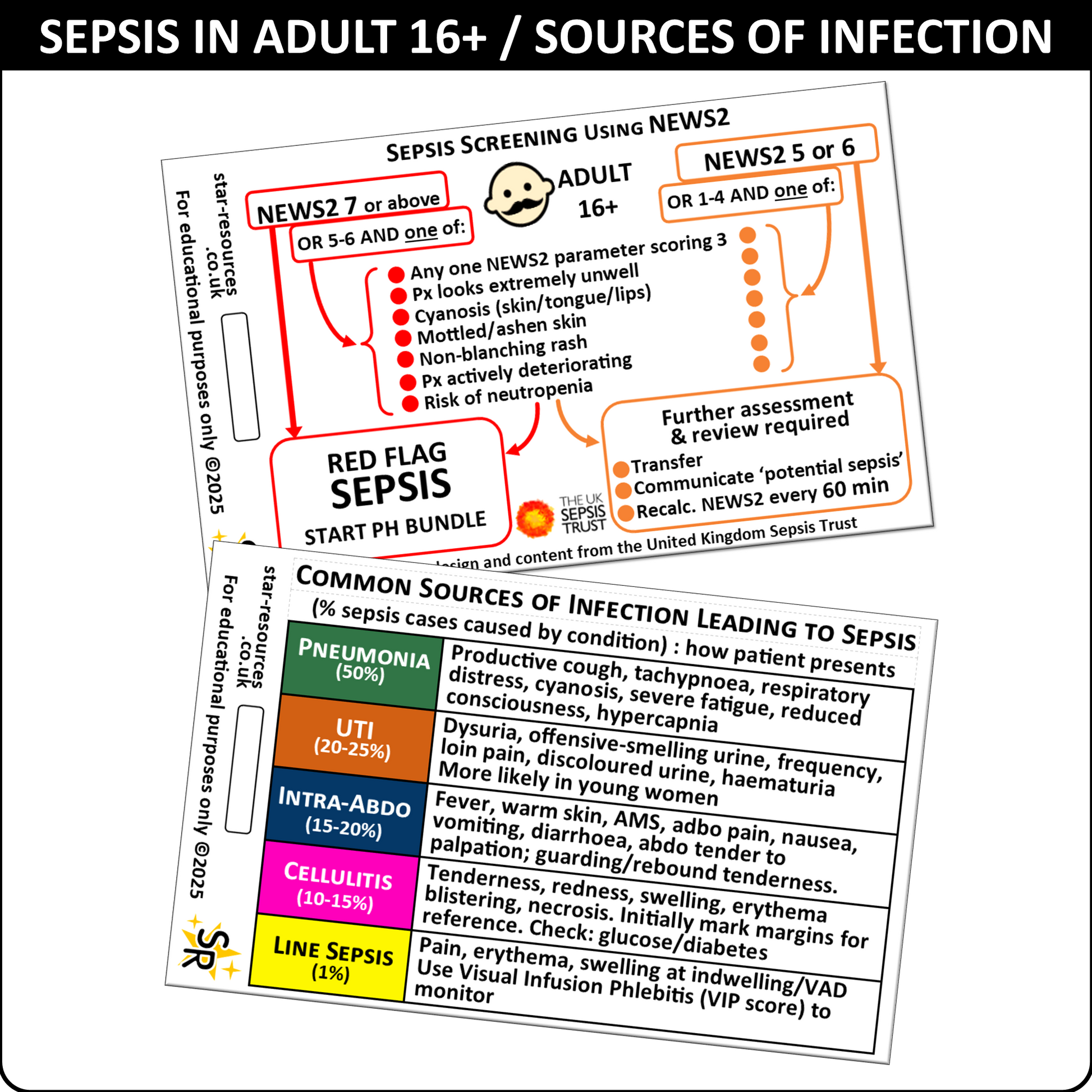 Adult Sepsis Screening with NEWS2 ID Badge Flashcard - Pocket Paramedic Guide