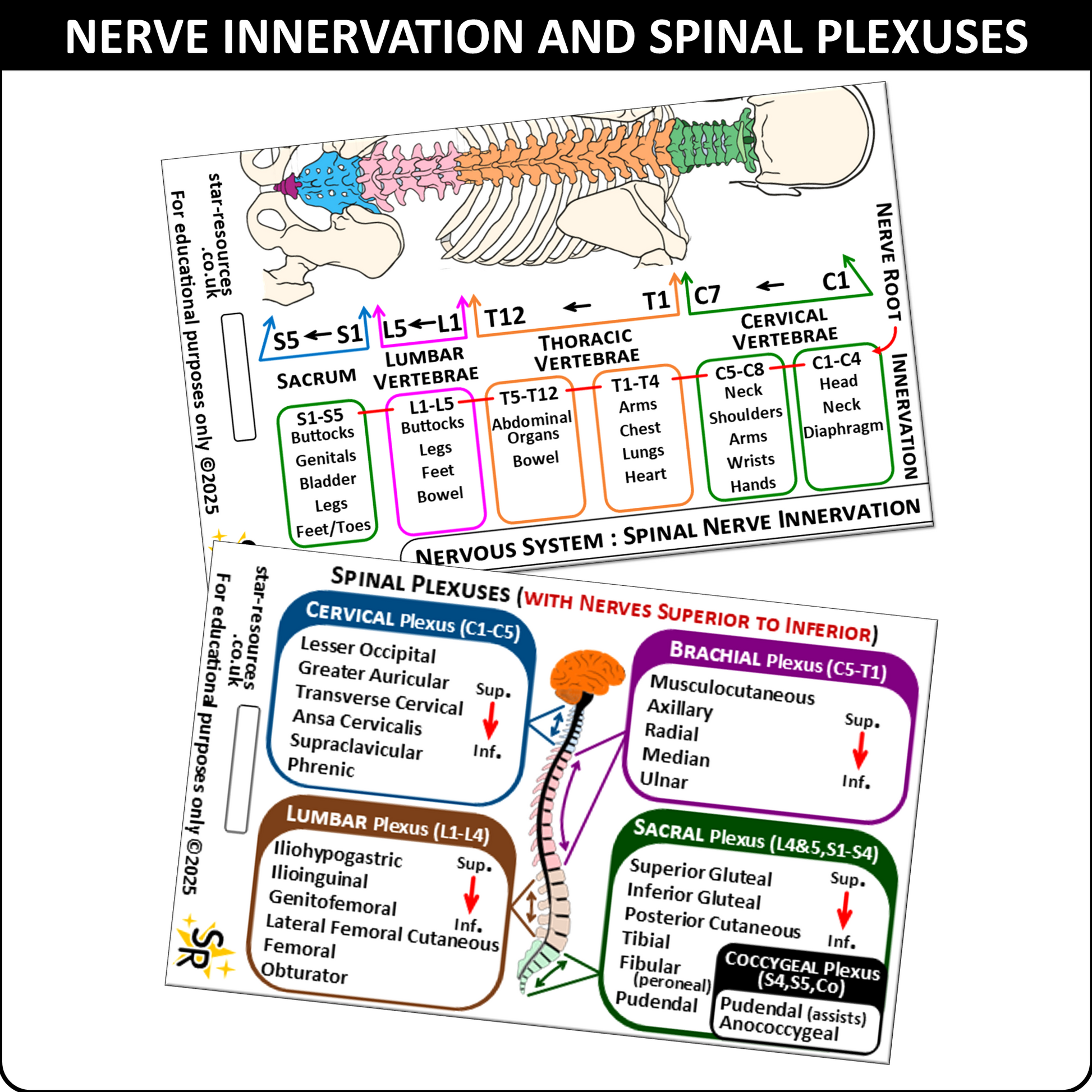 Spinal Plexus Nerve Innervation ID Badge Card | Paramedic Flashcard | Anatomy Study Aid for Nurses, Physiotherapists and Students