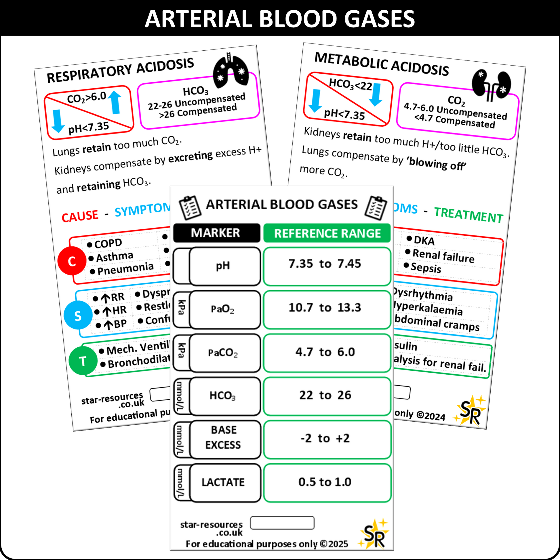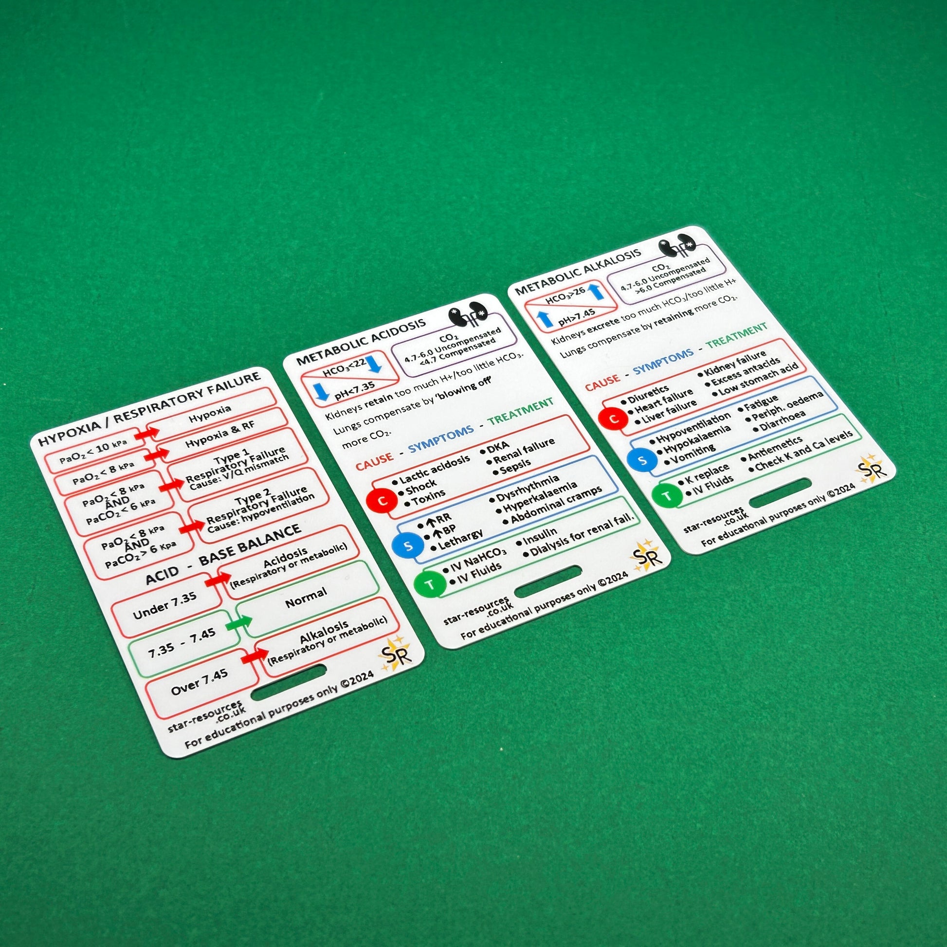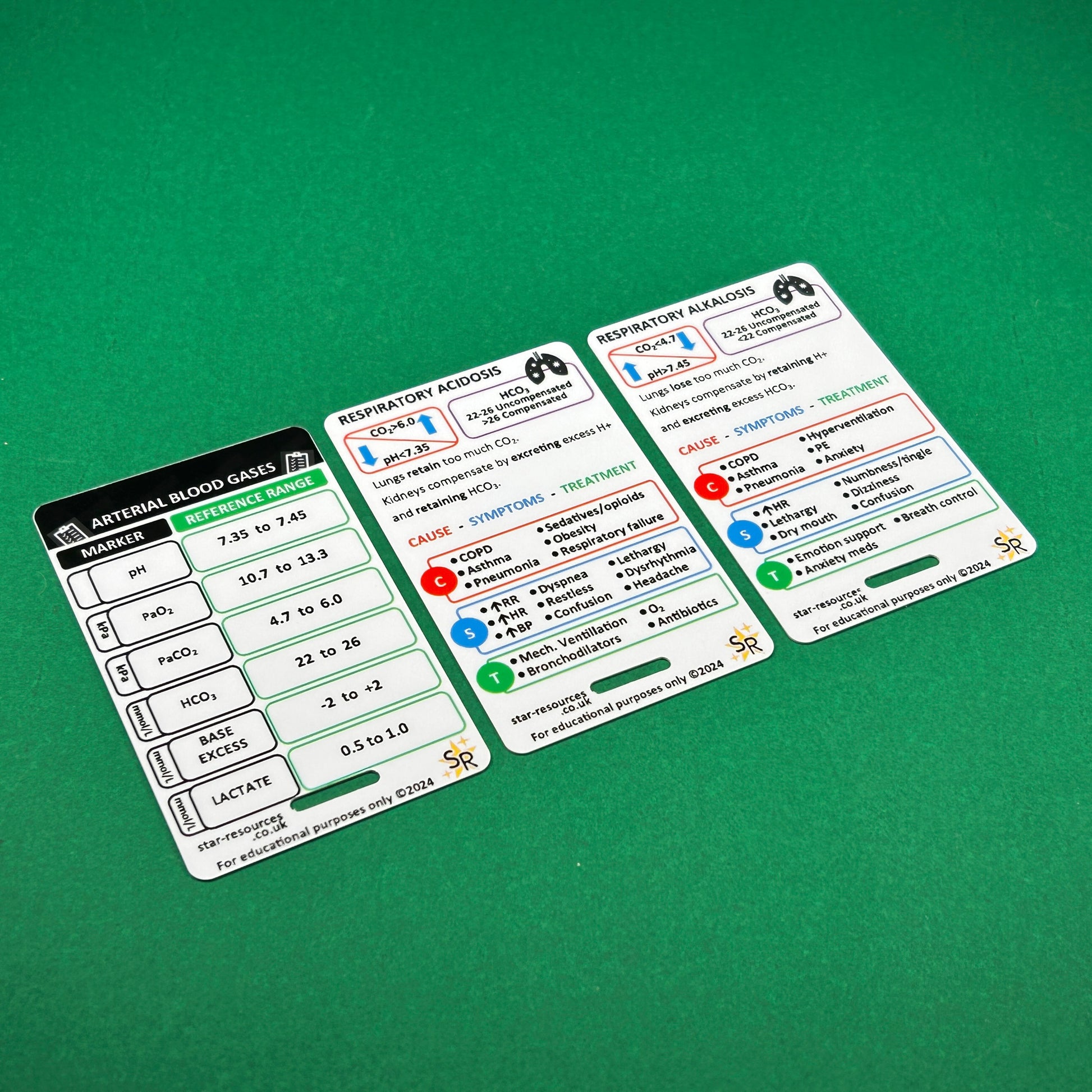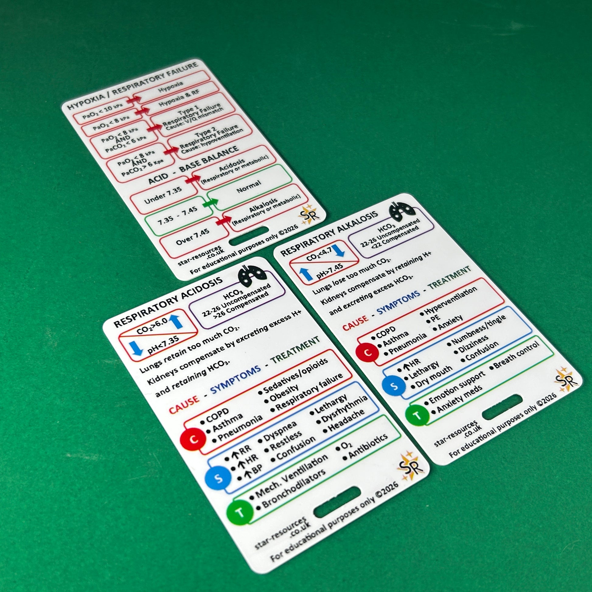 This high-quality ID badge card set (set of 3 cards) is a must-have for mastering Arterial Blood Gas (ABG) analysis. Perfect for paramedics, respiratory therapists, medical students, and healthcare professionals, these durable flash cards offer a quick reference for interpreting ABG results. Ideal for use during clinical shifts or study sessions, it ensures you have vital information at your fingertips!