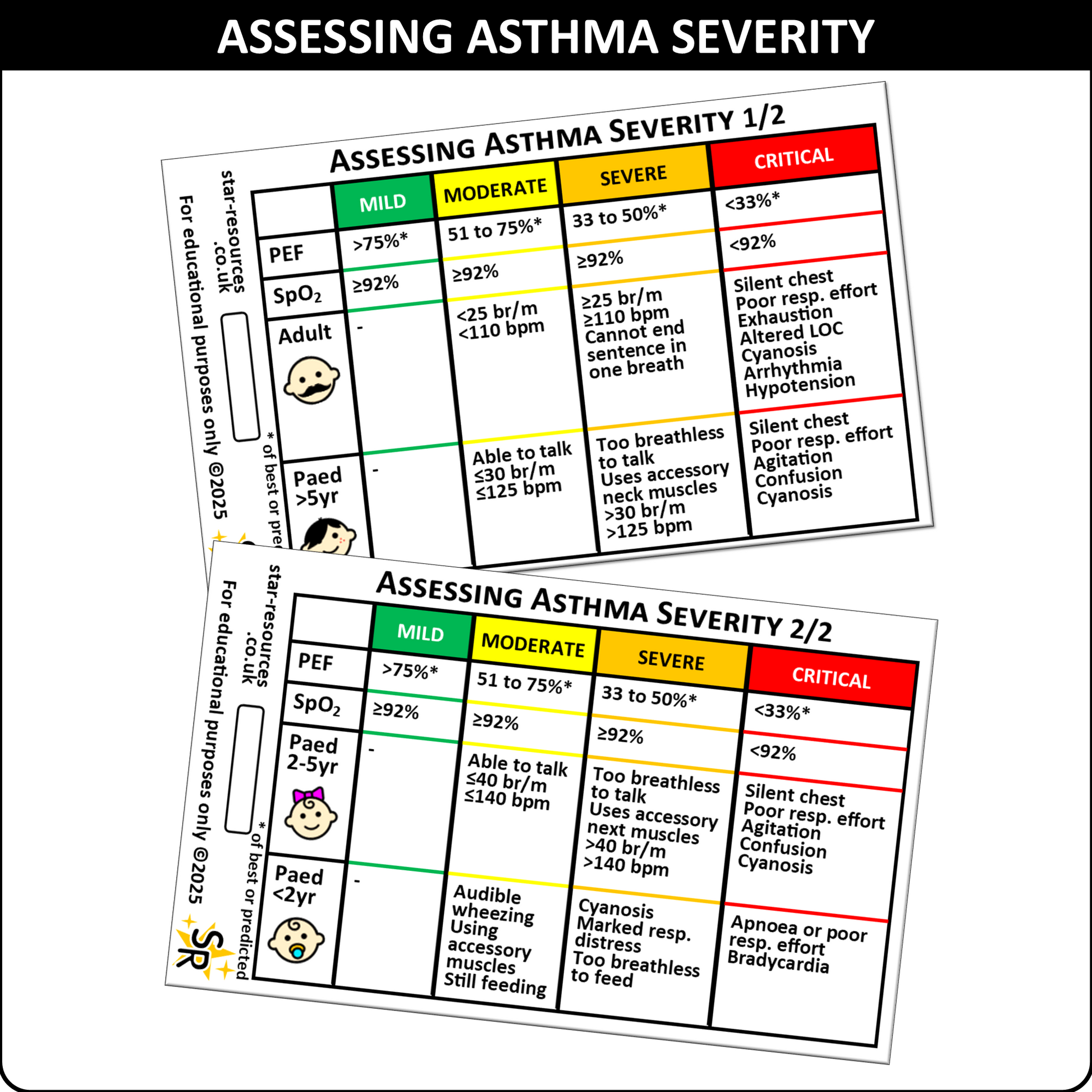 - Quick Reference Guide: Ideal for quickly assessing asthma severity. Have the information at your fingertips during clinical practice.