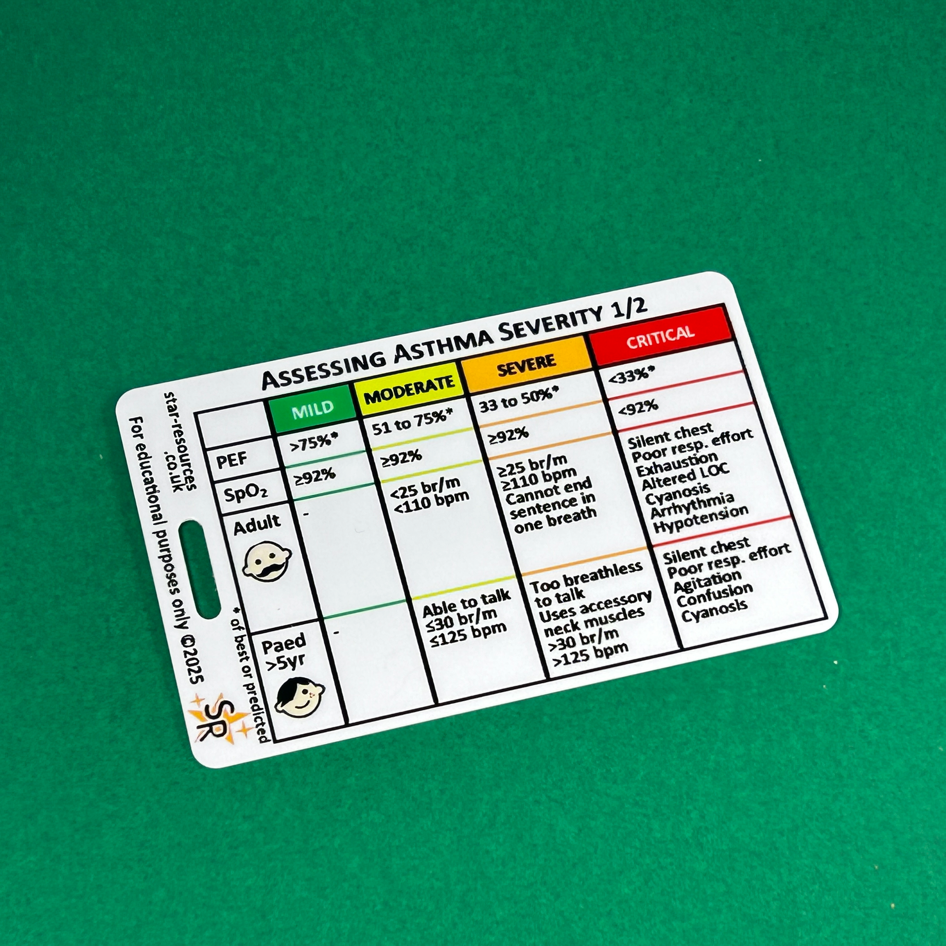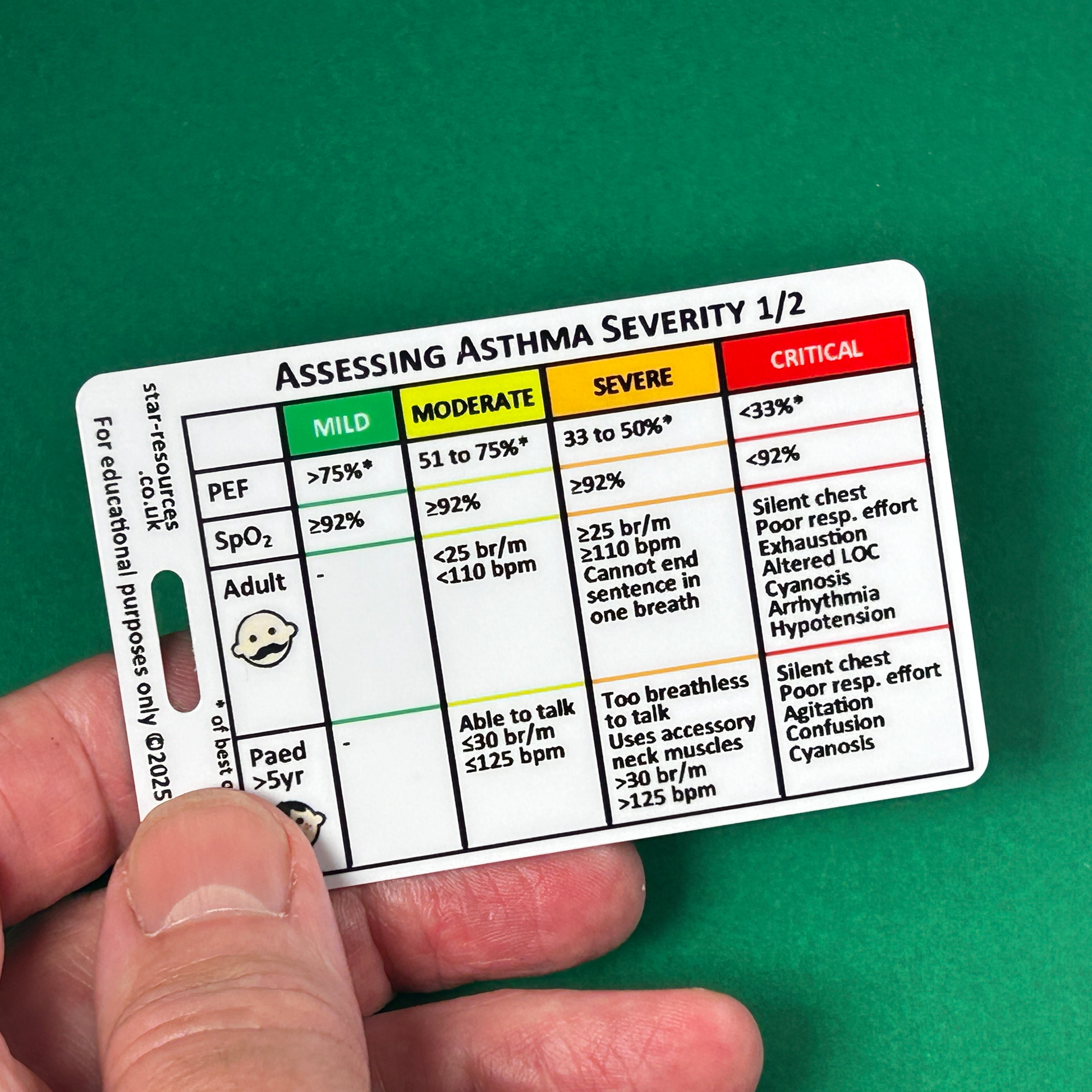 Stay prepared with our Asthma Severity Assessment ID Badge Flashcard, designed to help healthcare professionals and students quickly assess the severity of asthma symptoms. Whether you're a medical student, nurse, paramedic, ECA or first responder, this card is an essential tool for patient evaluation and care.