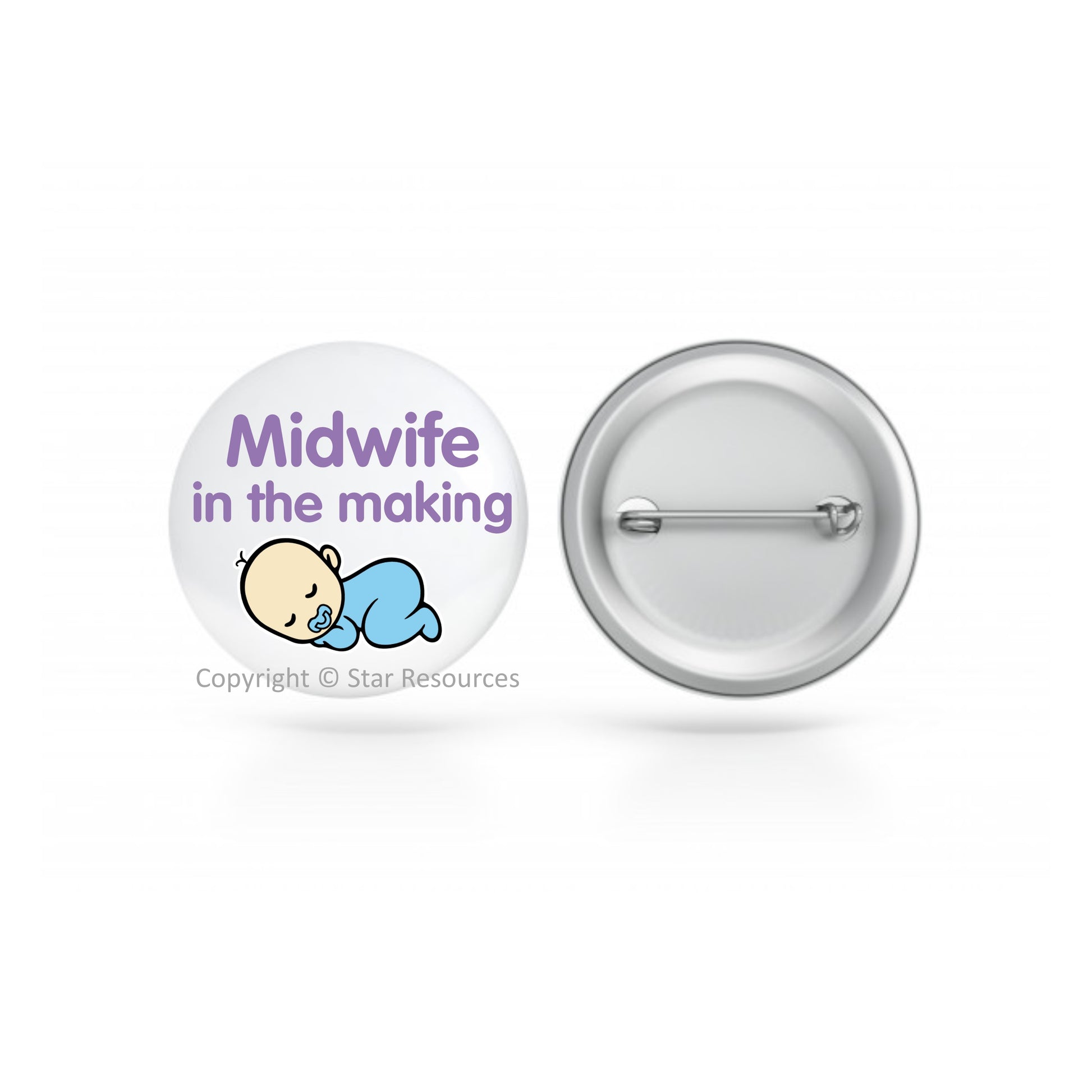 Fun 38mm badge for student midwives - especially designed for work bags, back packs, coats, pencil cases etc.