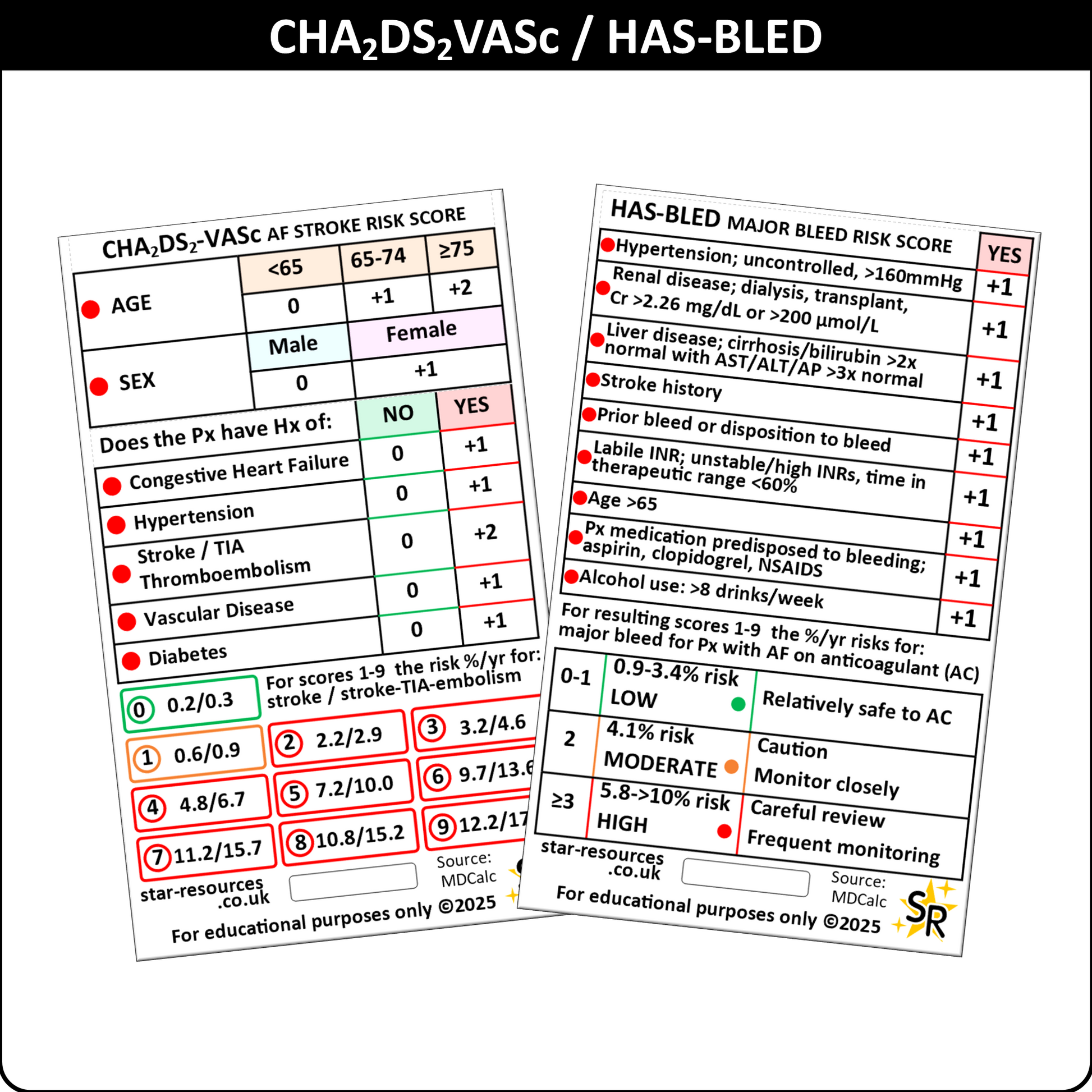 • HAS-BLED & CHADS-VASc – Best for general clinical practice and field use. The most widely recognized bleeding score, familiar to students and professionals alike.