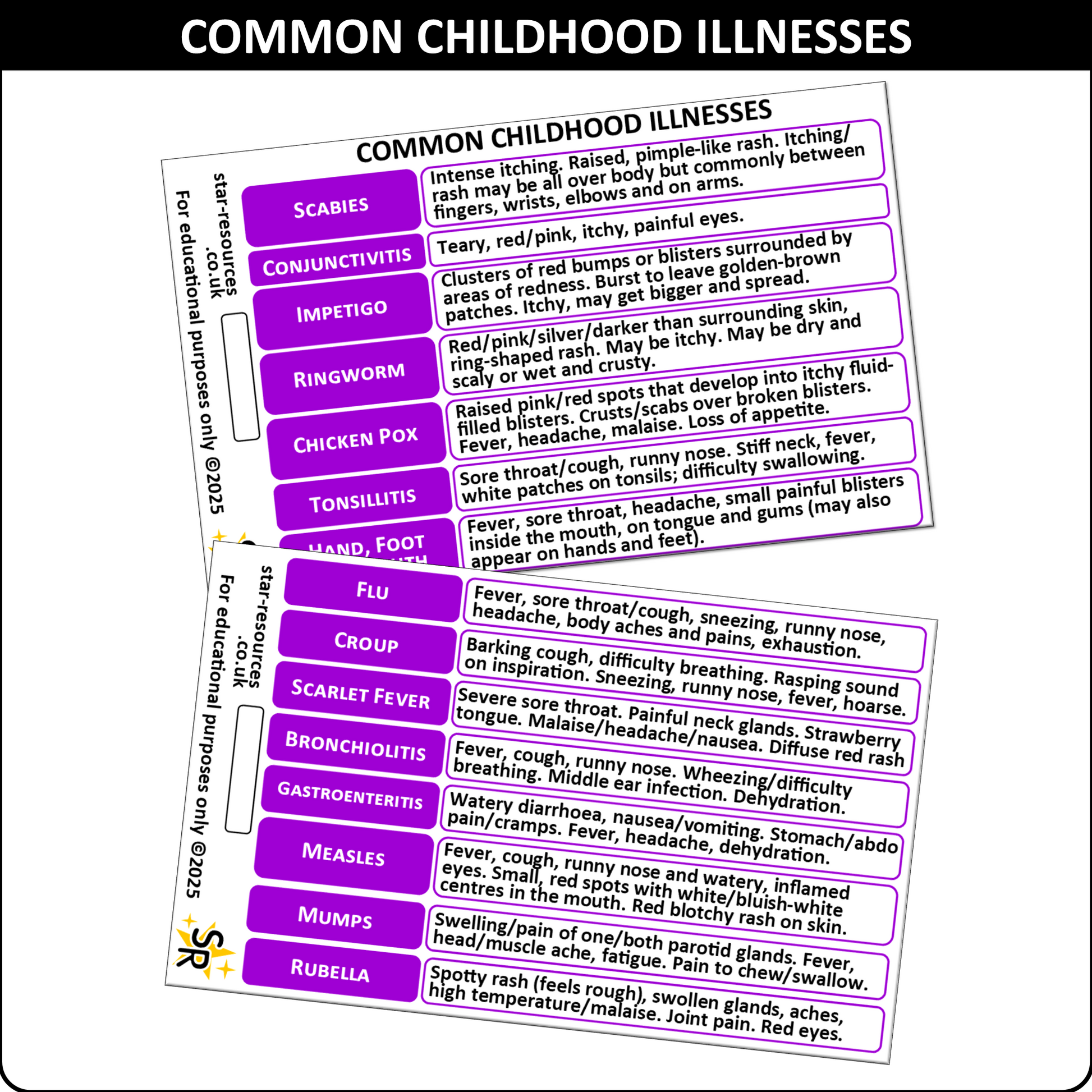 👶 From chickenpox to croup, it can be hard to keep all those childhood conditions straight—especially when you're on the move and sleep-deprived (again). That’s where this handy badge card swoops in like the superhero of symptom-spotting! 🦸♀️🩺