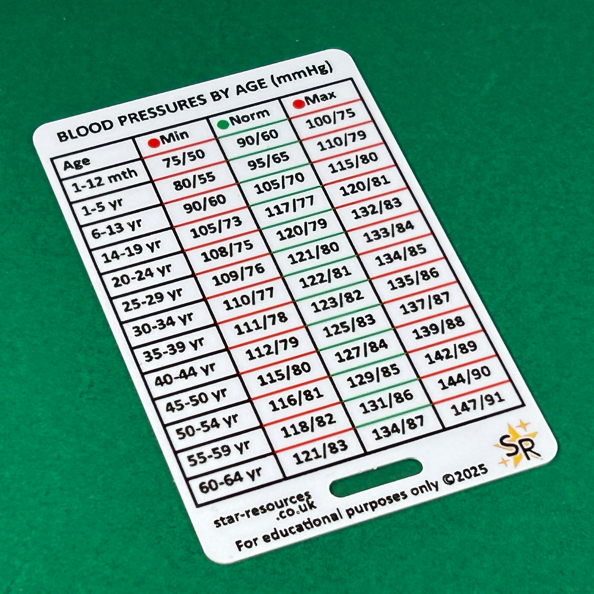This handy double-sided ID badge card gives you two essential blood pressure reference tools in one place — perfect for nurses, student paramedics, ambulance staff, ECAs, physiotherapists, and other healthcare professionals.