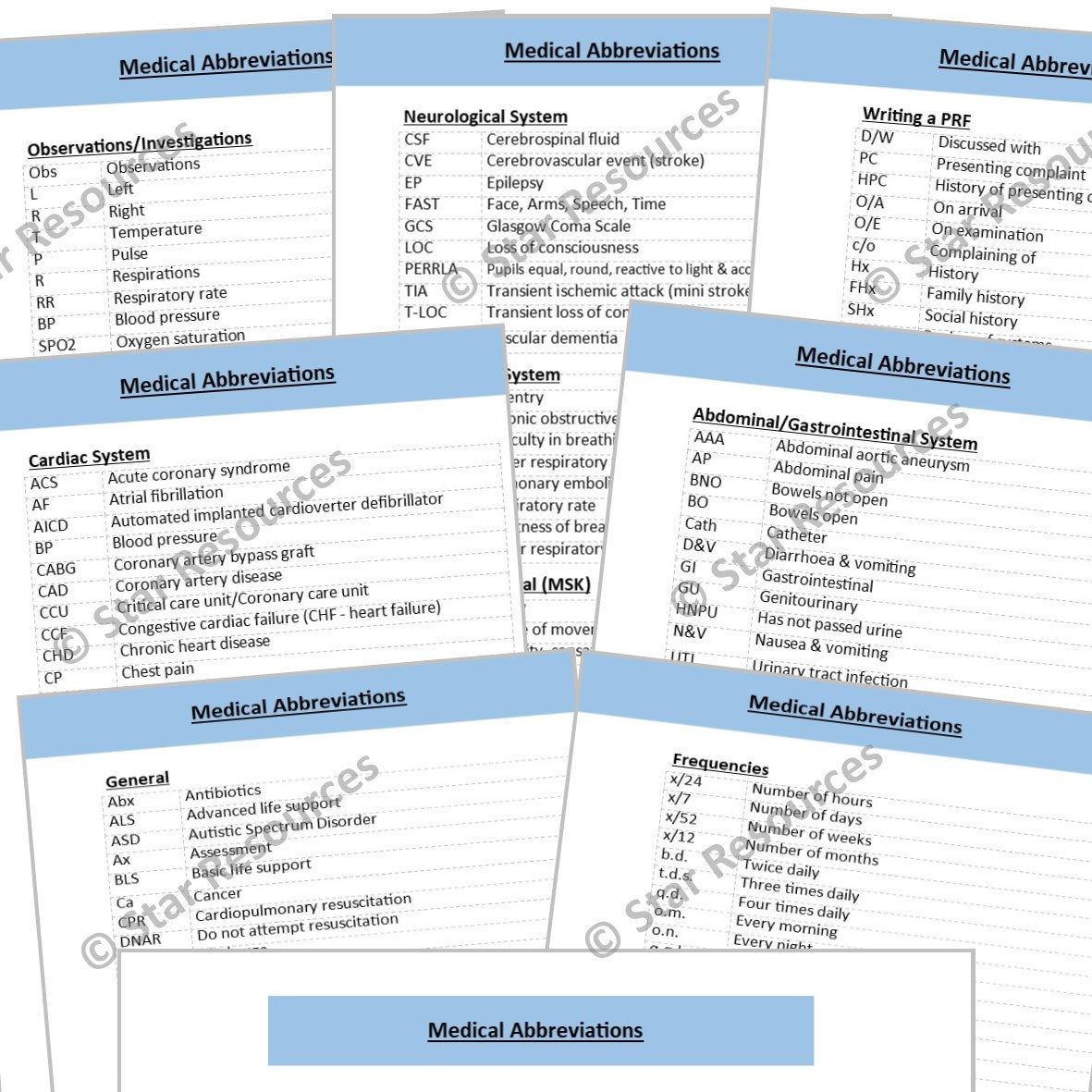 Our Medical Abbreviations Flash Cards cover the most commonly used Abbreviations that you will need when treating Patients. Medical Abbreviations are widely used when writing Patient's History Notes/PRF and giving Patient Handovers to GP's and ED staff.