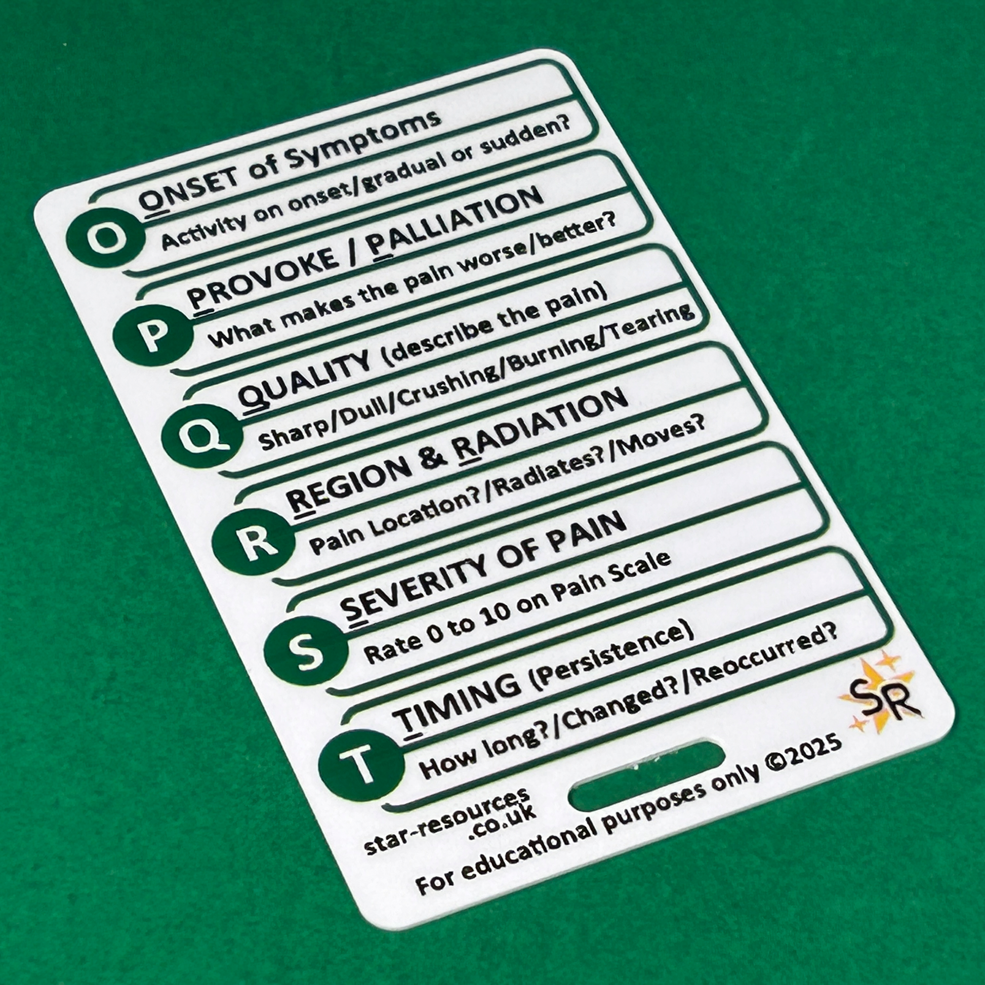 Stay prepared with our OPQRST and SAMPLE ID Badge Flashcard, crafted to assist healthcare professionals and students in easily accessing critical patient assessment information. Whether you're a medical student, nurse, paramedic, ECA or first responder, this card is an essential tool for effective patient evaluation and care.
