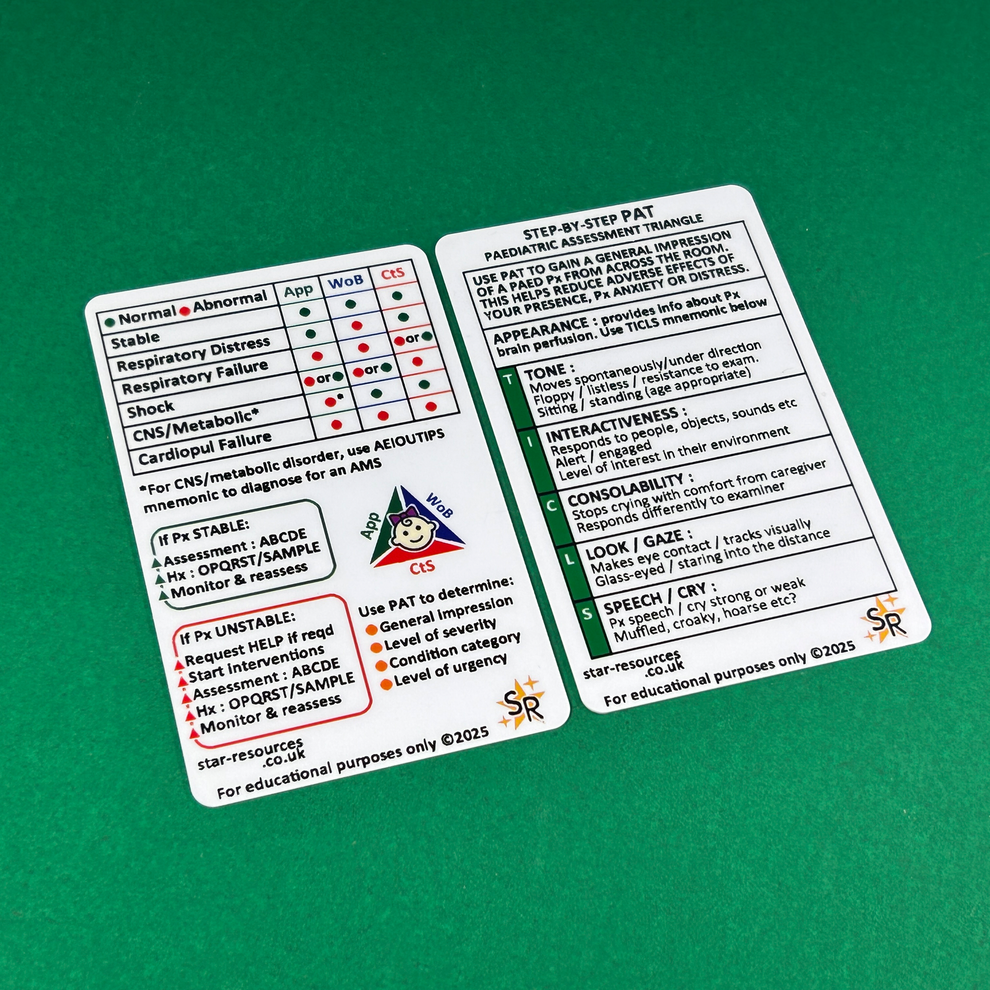 Paediatric Assessment Triangle - PAT - ID Badge Flash Card Student Paramedics Ambulance