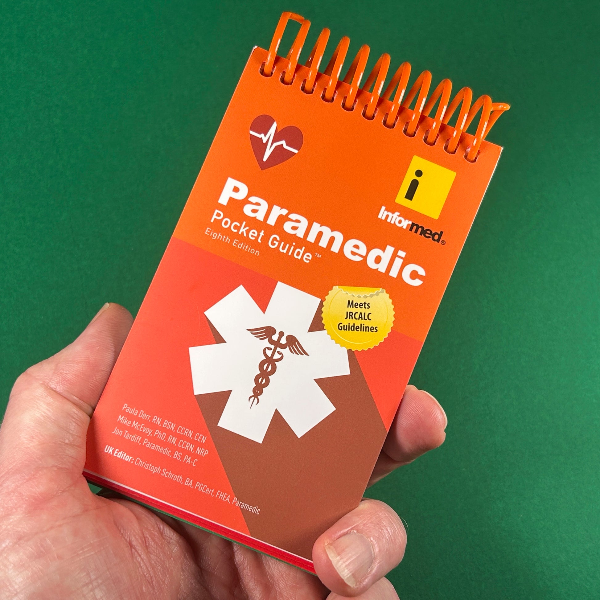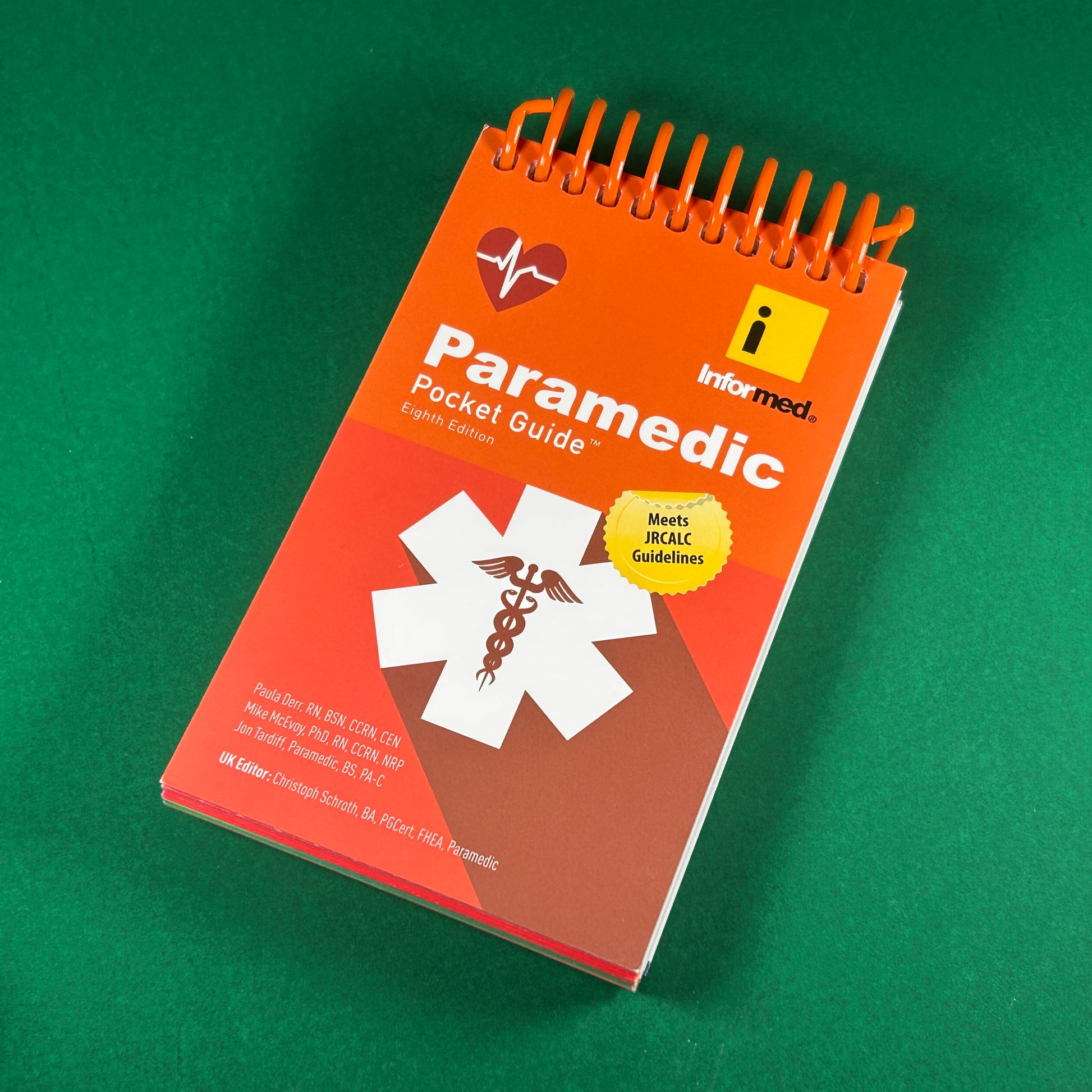 The Paramedic Pocket Guide is a compact yet comprehensive reference for paramedics, nurses, and doctors, designed for quick access to essential emergency and critical care information. This 3" x 5" guide consolidates key details from larger references into a portable format. The Eighth Edition includes updated content such as alignment with JRCALC Guidelines, details on poisons and emergency medications, ECG rhythm strips, paediatric medication dosages, and protocols for managing medical emergencies. Perfect for on-the-go use in various medical settings.