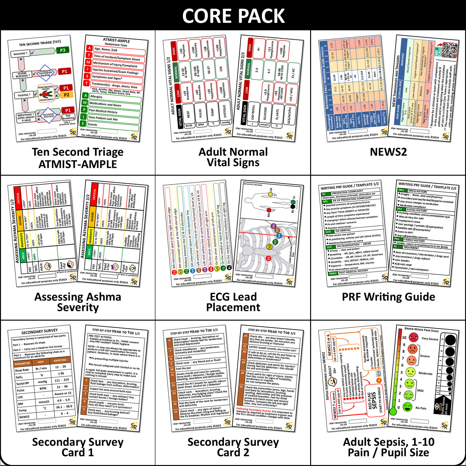 Core Pack Patient Assessment ID Badge Flashcards Paramedic Student Ambulance
