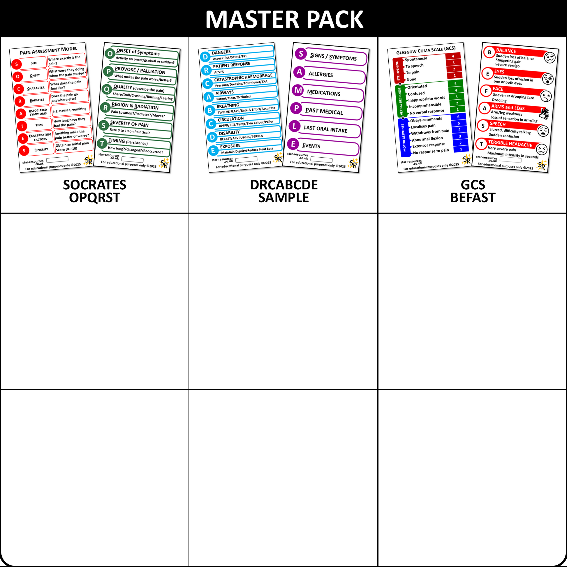 CORE SUPPORT is aimed a students, newly qualified paramedics, ECA’s and CFR’s. This pack includes specific Step-By-Step cards that provide more in-depth information and extra support for the key patient assessment tools. They are designed to help you develop confidence and ability when dealing with patients and providing emergency medical support. The Step-By-Step cards build on the key learnt mnemonics and provide additional information and example questions to help you master their use.