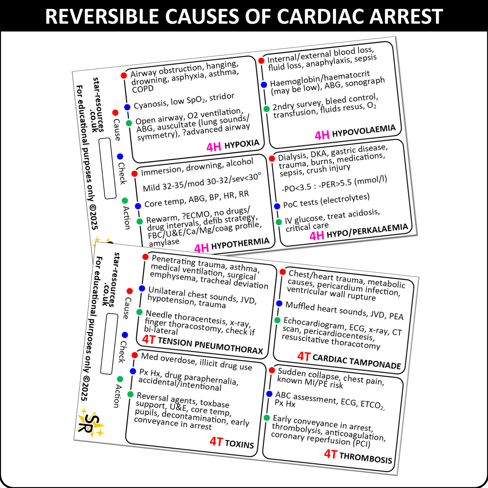 Reversible Causes of Cardiac Arrest Badge Card – 4 H’s & 4 T’s