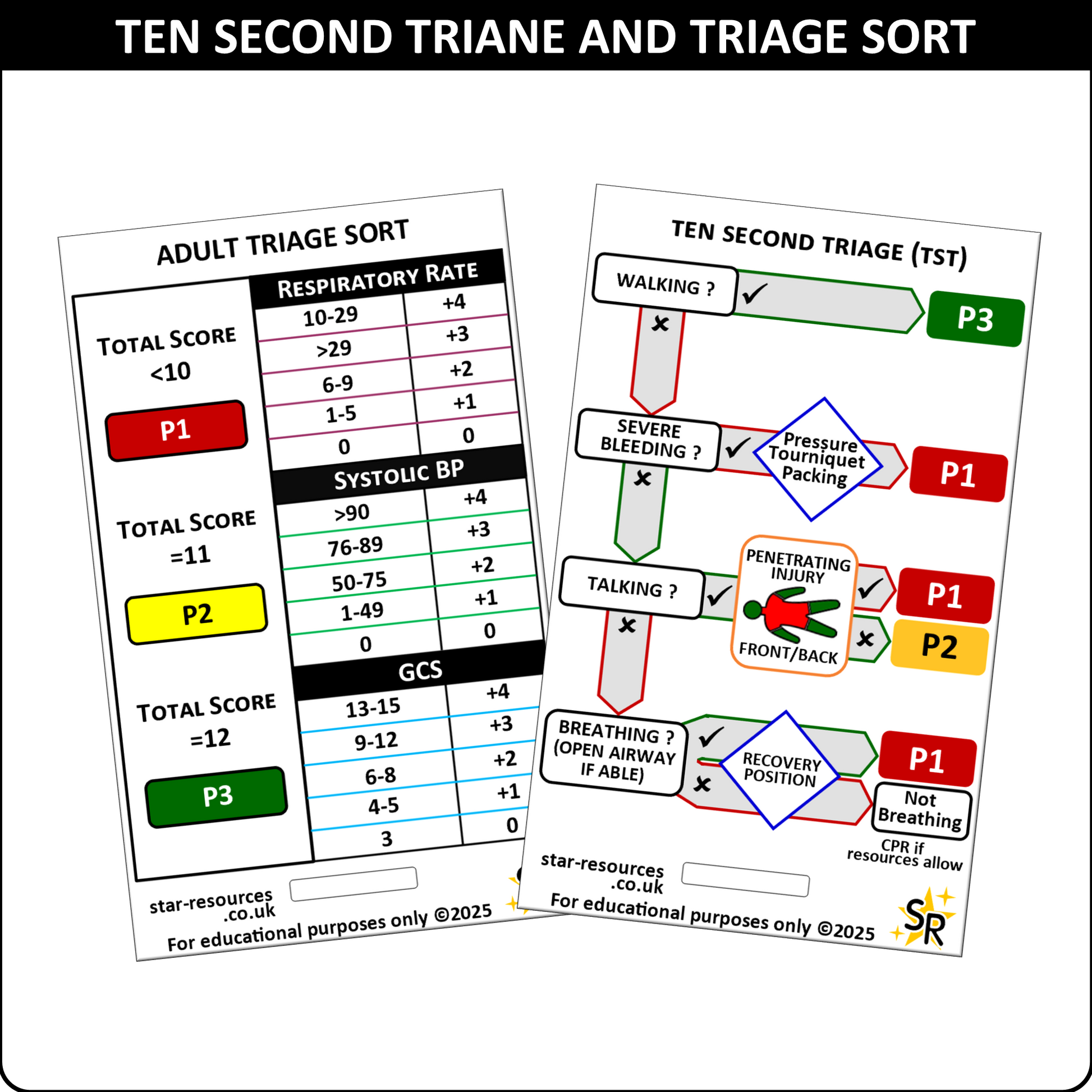 - Quick Reference Guide: Perfect for recalling the Ten Second Triage method. Have critical information at your fingertips during emergency situations.