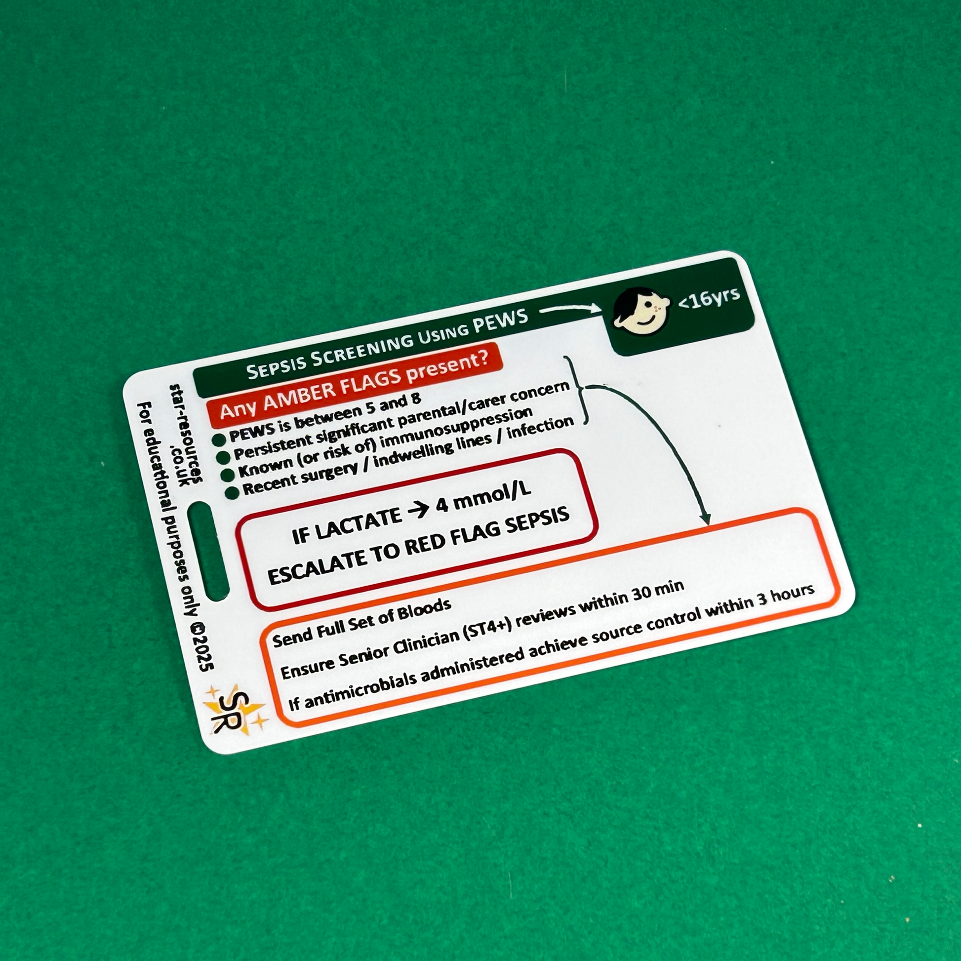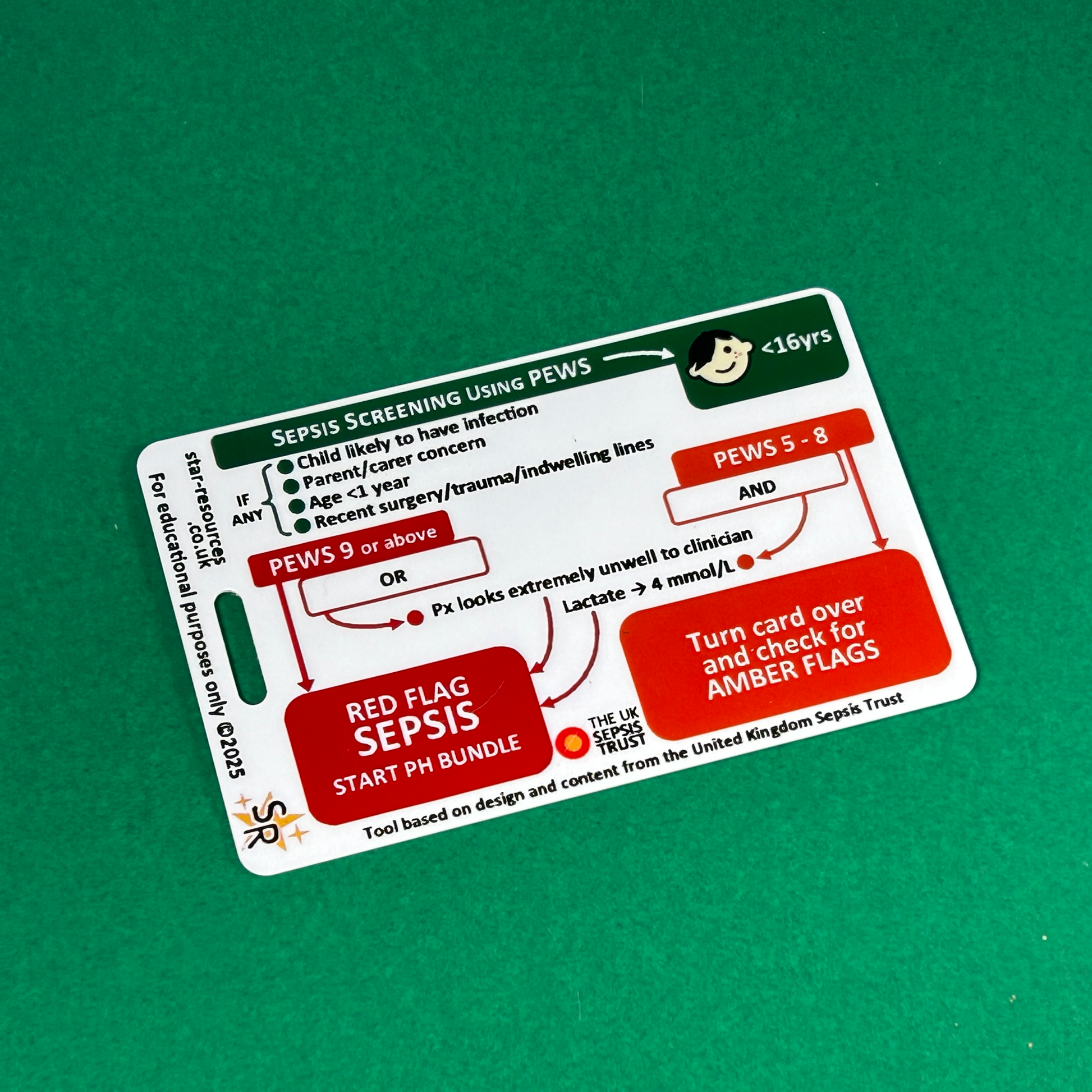 Under-16 Years Sepsis Screening Tool + PEWS ID Badge Card — Pocket Guide for Nurses, Students, Paramedics & First Responders