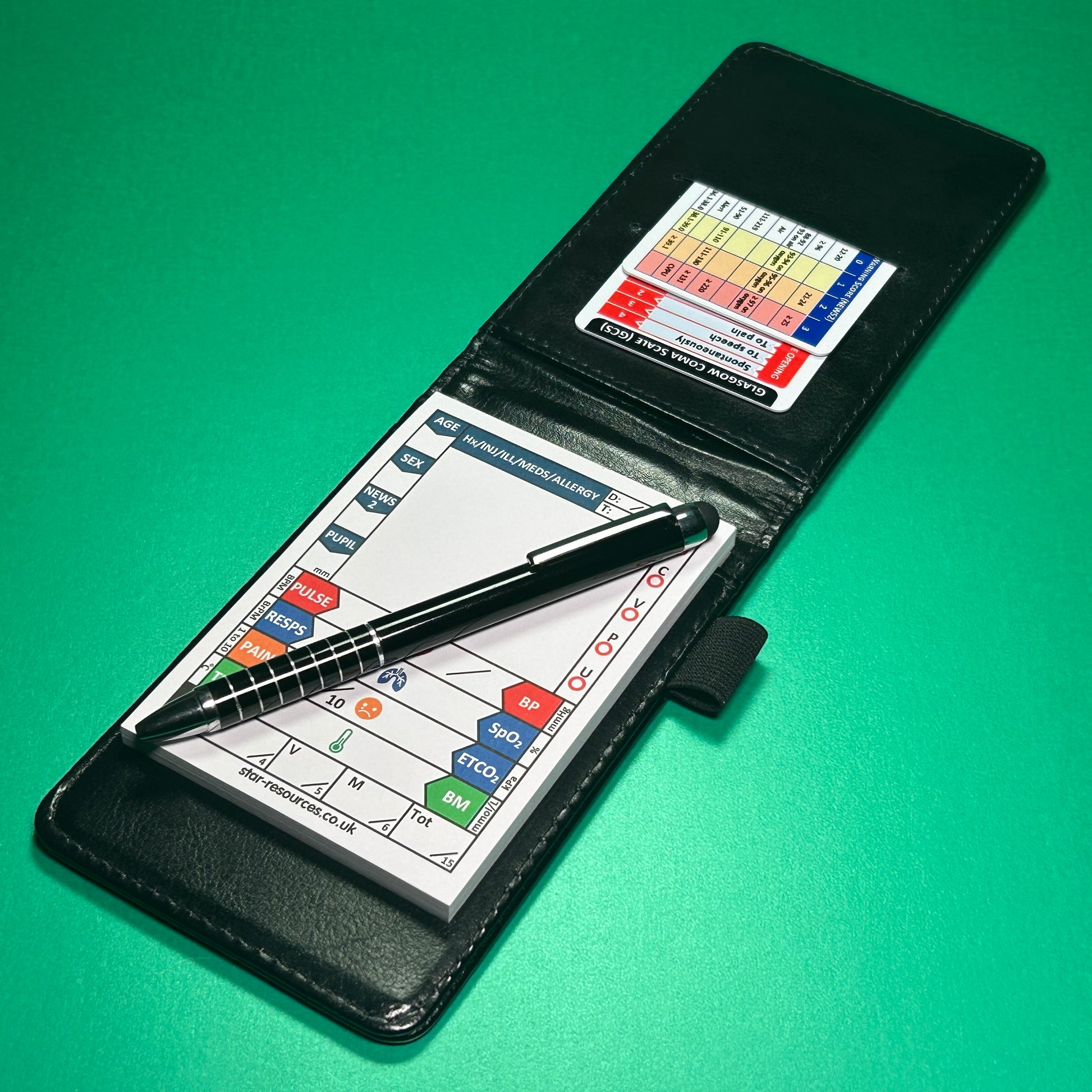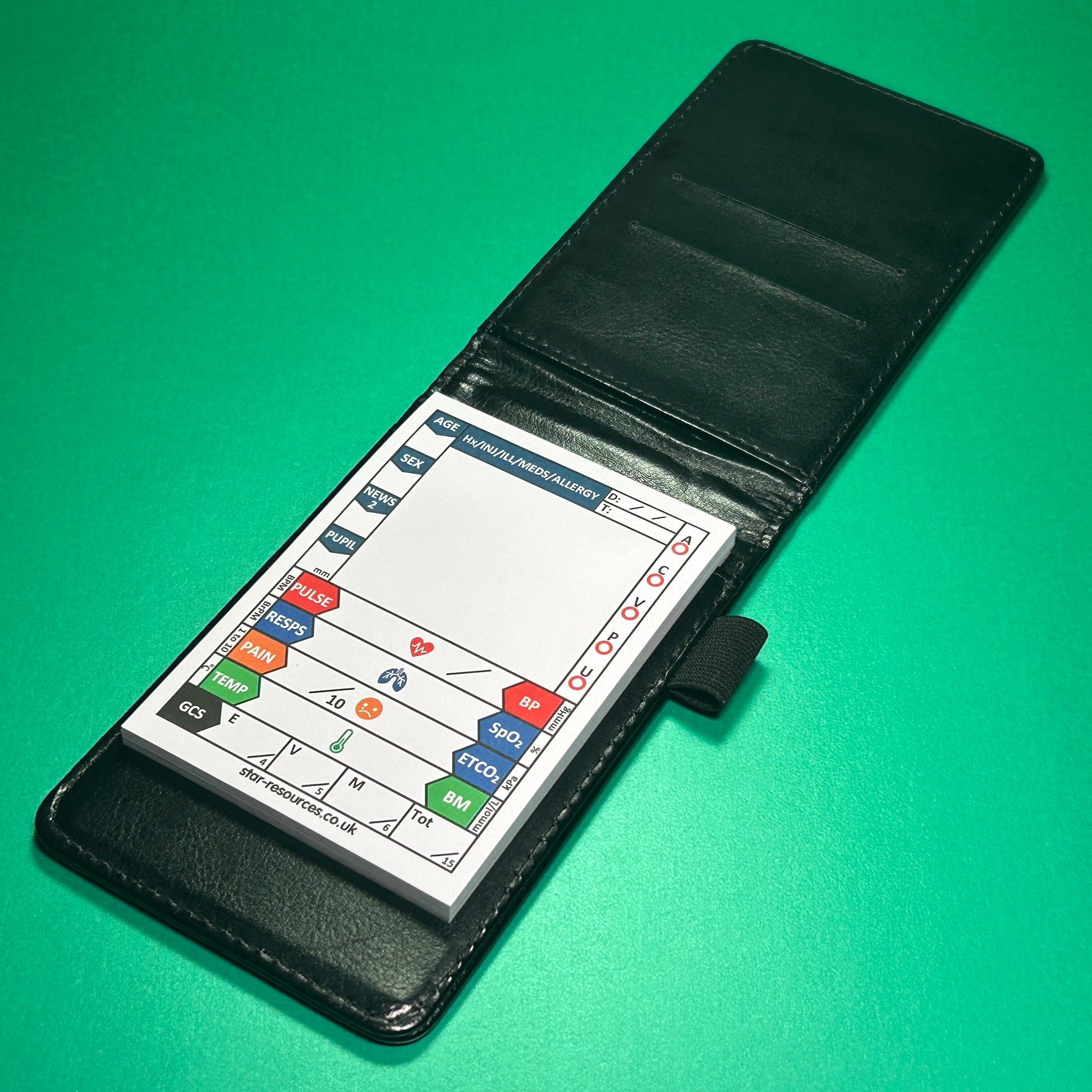 Inside the wallet, there's space for two optional credit card size cards. This is ideal for your choice of ID Badge cards which we also supply. For the first time buyer or new student, the two recommended cards would be GCS and NEWS2, but any of our range would fit snugly and be available at your fingertips.