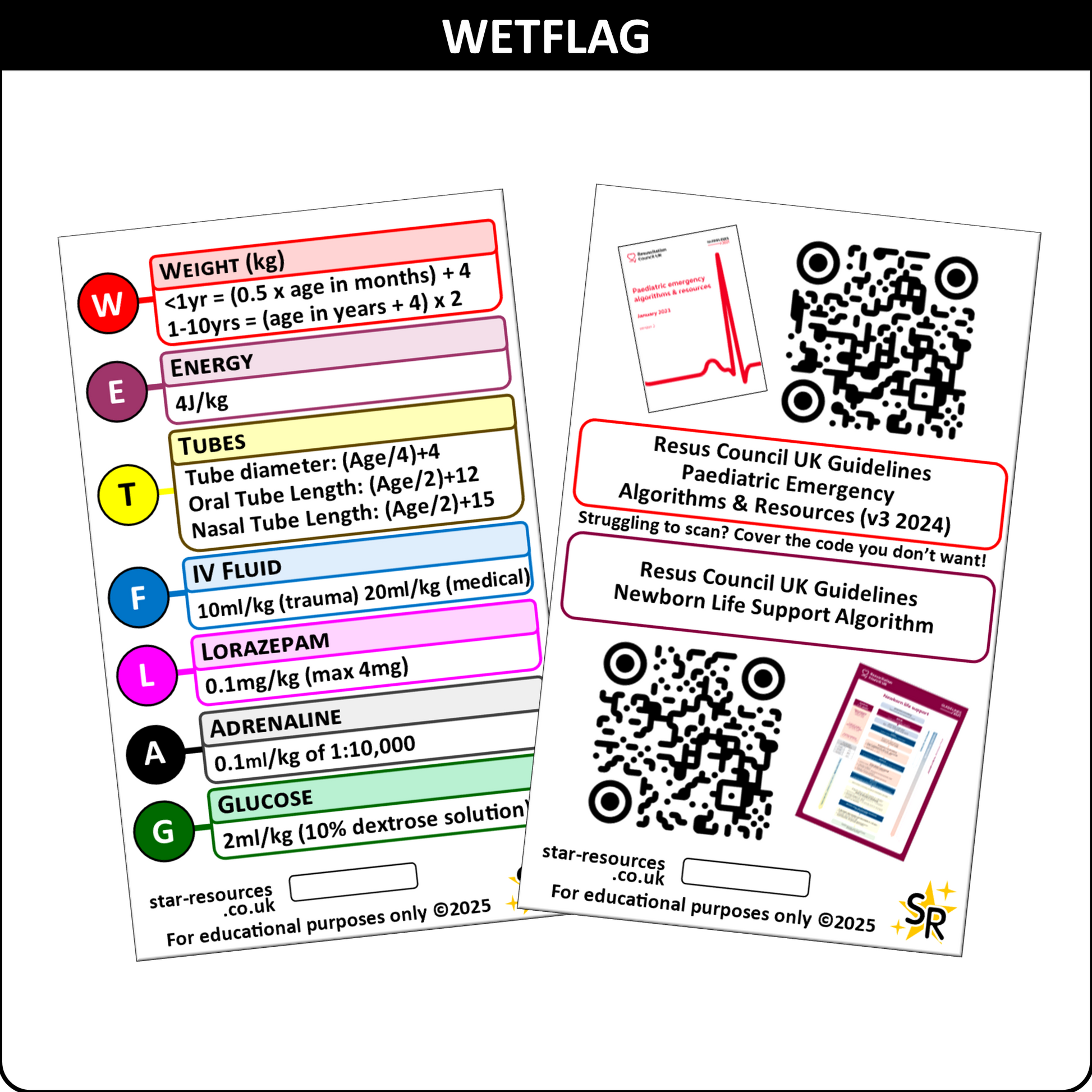 - Quick Reference Guide: Ideal for recalling the WETFLAG mnemonic. Have vital pediatric emergency information at your fingertips during critical moments.